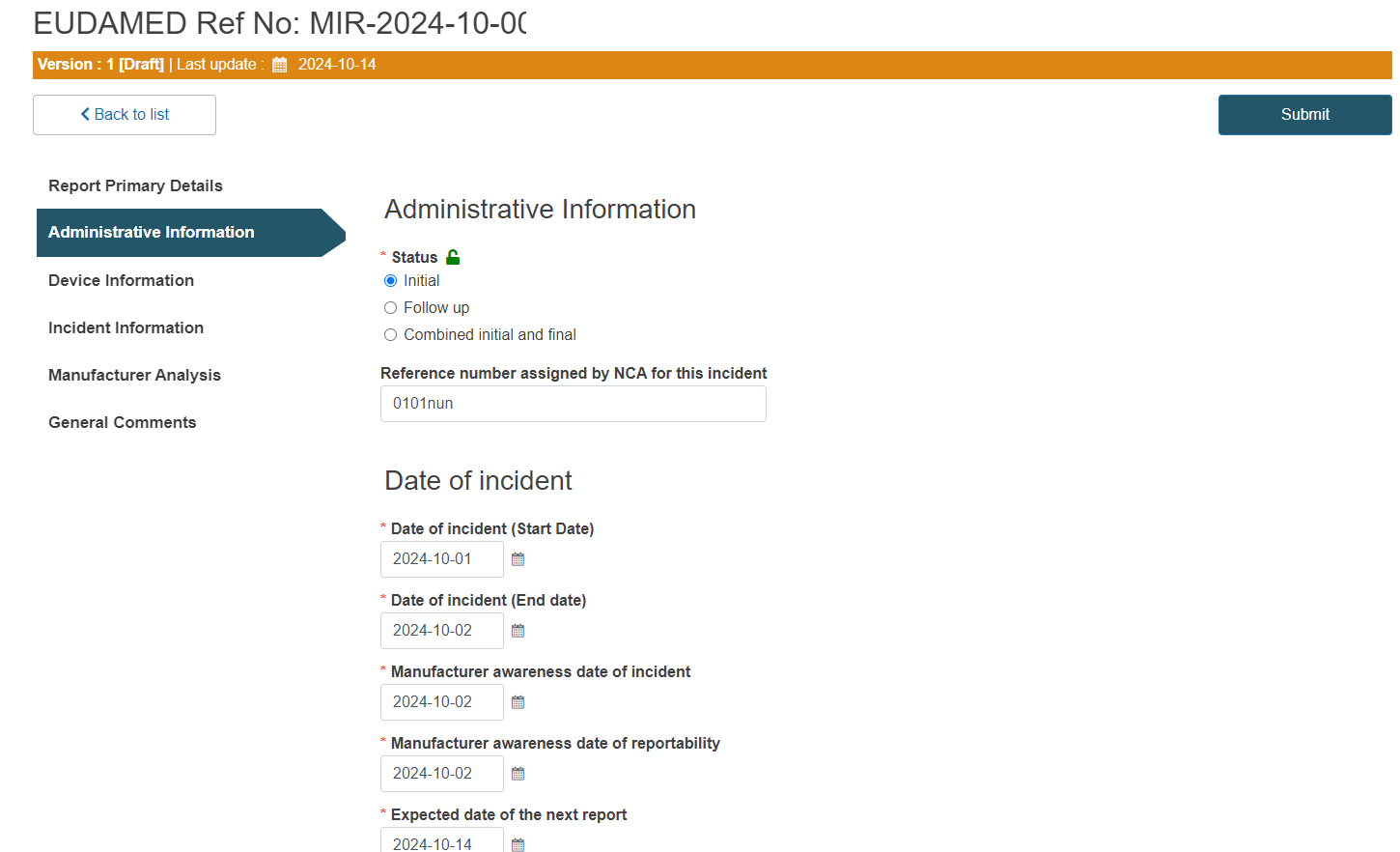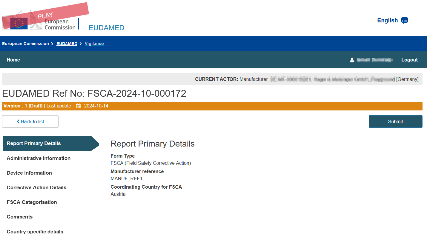 Das Vigilance-Modul wird es ermöglichen, Vorfälle und Maßnahmen elektronisch an die zuständigen Behörden zu melden. Hersteller müssen sicherstellen, dass alle sicherheitsrelevanten Daten in der vorgegebenen Form erfasst und eingereicht werden. Das Modul ist in verschiedene Abschnitte unterteilt: