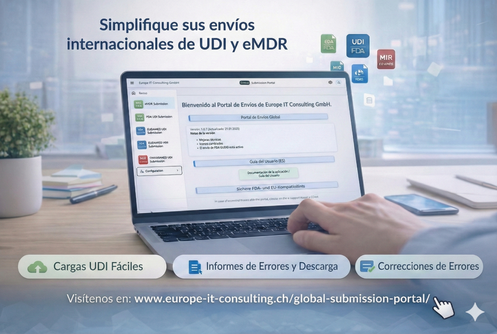 Europe IT Consulting se complace en anunciar el lanzamiento del Global Submission Portal, una solución revolucionaria que simplifica y acelera los procesos de cumplimiento normativo para los fabricantes de productos sanitarios de todo el mundo.